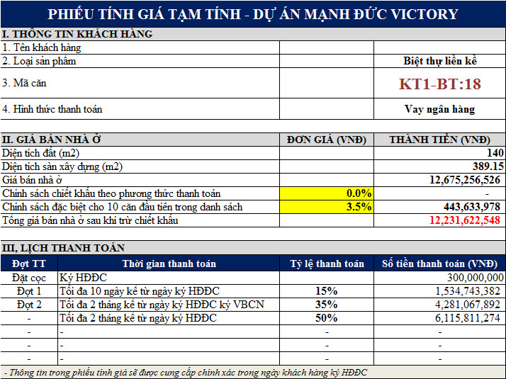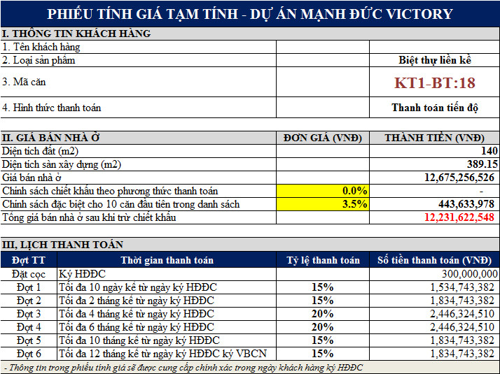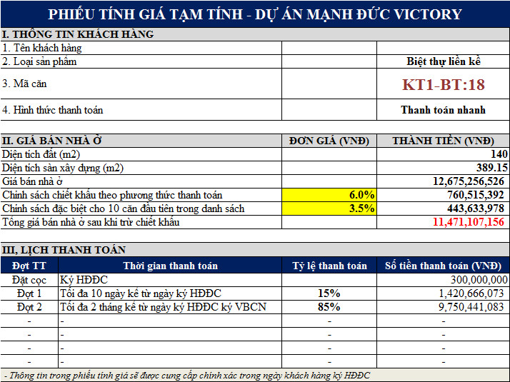 Mạnh Đức Victory – nơi tinh hoa của cuộc sống hoàn hảo hòa quyện với không gian xanh mát và tiện ích đa dạng. Chúng tôi tự hào giới thiệu Siêu phẩm Kinh Tây 1 – BT18, một căn biệt thự liền kề với vị trí đắc địa và tổng giá ưu đãi nhất trên thị trường.