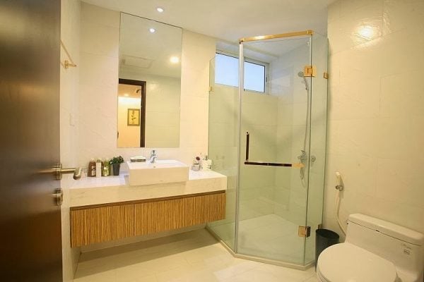 Không gian phòng ngủ chính là không gian riêng tư rất lý tưởng. Nó được thiết kế đảm bảo theo tiêu chuẩn về độ sáng, gió và tiếng ồn. Hệ thống các cửa được trang bị kính 3 lớp Double Glazing cách âm, cách nhiệt, cản tia cực tím đến 75%, khung nhôm sơn tĩnh nhiệt. Các nội thất đi kèm như tủ âm tường, bàn trang điểm, ghế trang điểm, đèn ngủ … đều đạt tiêu chuẩn chất lượng.